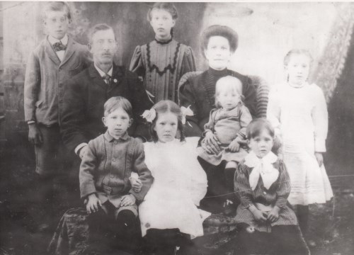 droite : Charles, Marie, bébé Joseph et Armand BeaulieuIl manque Gérard, Adrienne, Antoine et Paul Beaulieu